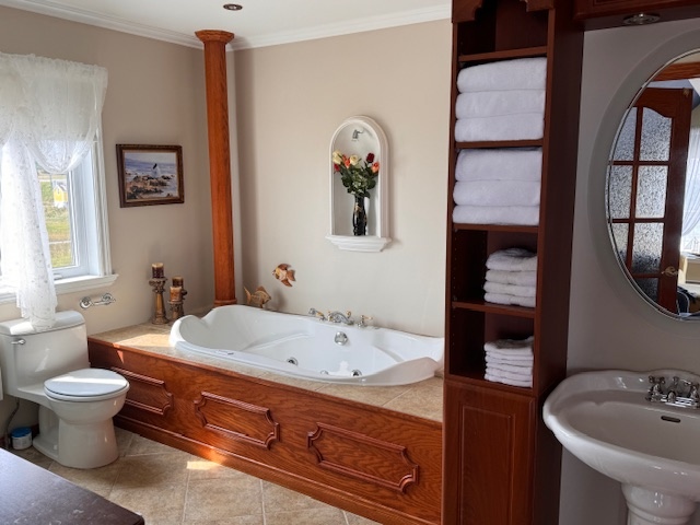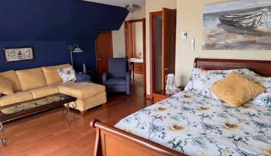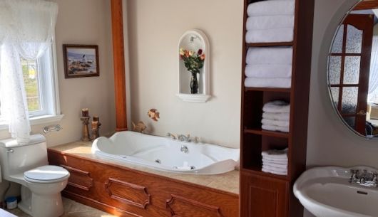 Le Loft romantique situé à l'étage est un en endroit de rêve pour passer des vacances relaxantes et romantiques. Vous y trouverez un salon/chambre à coucher avec téléviseur écran plat, internet haute-vitesse, salle de bain communicante avec bain tourbillon et douche vitrée. Une cuisine moderne avec plafond cathédrale et éclairée par une grande fenêtre est équipée d'une cuisinière, réfrigérateur, lave-vaisselles ect. Il y a aussi une pièce avec laveuse et sécheuse. Un grand balcon avec ensemble de patio pour admirer la vue imprenable sur la mer. Le loft est de qualité supérieure, très bien insonorisé et possède son entrée privée. De votre lit vous pourrez voir et entendre le roulement de la mer...! Nous sommes ouvert à l'année. Le mois de mai et juin c'est le temps de la pêche aux homards. Les pêcheurs lèvent